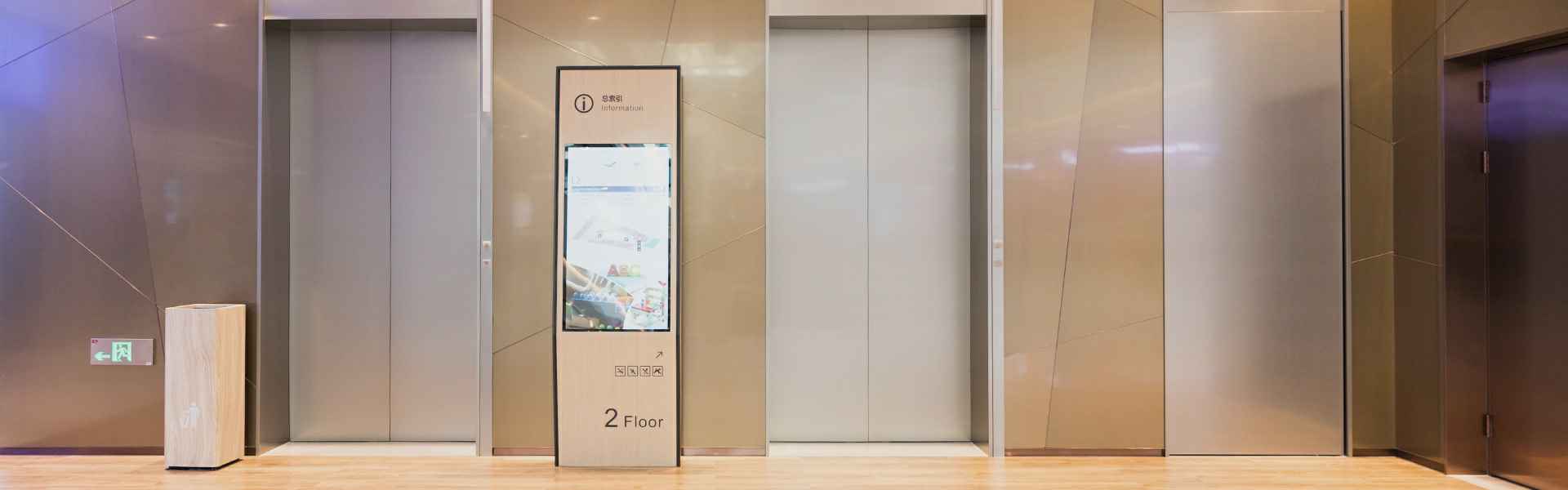 井道和轿厢壁至少有同一侧透明,乘客可观看轿厢外景物的电梯。主要安装于宾馆、商场、高层办公楼场合,有一面或几面的井道壁和轿厢壁同侧是透明材料,乘客在乘坐电梯时,可以观看轿厢外的景物。